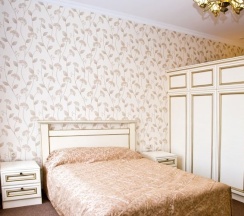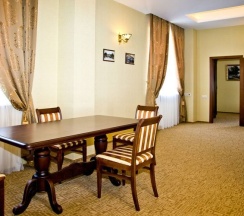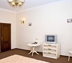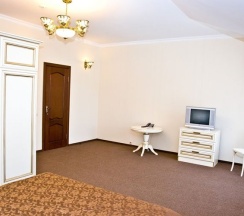 Комфортный и удобный номер высшей категории. Состоит из двух комнат большой площадью – гостиной и спальни. В номере имеется буквально все, что может потребоваться современному человеку – предметы мягкой мебели, стол для работы, бесплатный доступ в интернет, мини-бар. Изысканная ванная комната оснащена современной душевой кабинкой и шикарной ванной.