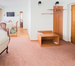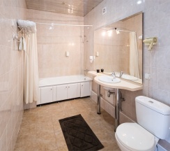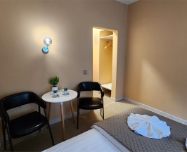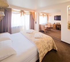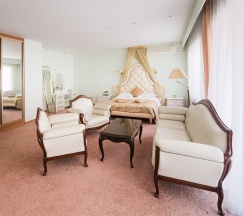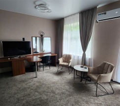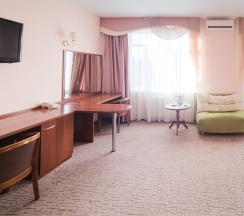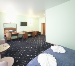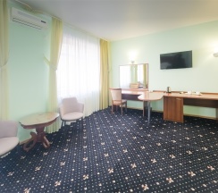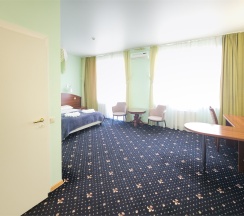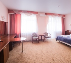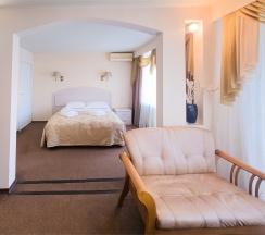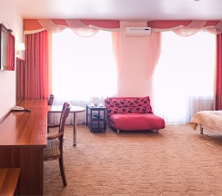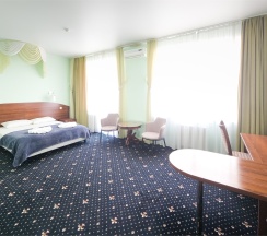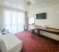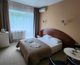 Комфортабельный просторный номер для двоих, отличающийся большей площадью жилой и ванной комнат. В нем есть все что нужно и для полноценного отдыха и для работы. Белоснежное постельное белье и полотенца, мягкие подушки и теплое одеяло, удобное рабочее пространство. Номер оснащен кондиционером, большим телевизором, холодильником и чайником. К вашим услугам беспроводной интернет и телефонная связь. В номере отдельный санузел большой площади, а также выход на открытый балкон.