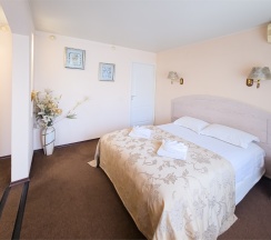 Комфортный номер для двоих с двуспальной кроватью. В нем есть все необходимое для полноценного отдыха. Белоснежное постельное белье и полотенца, мягкие подушки и теплое одеяло. Номер оснащен кондиционером, телевизором, холодильником и чайником. К вашим услугам беспроводной интернет и телефонная связь. В номере отдельный санузел с небольшой ванной, а также выход на индивидуальный открытый балкон.