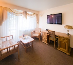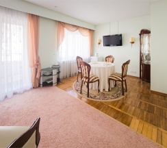 Отличный отель спрятанный от городской суеты в тени деревьев, здание со времён совка к сожалению с не очень ухоженной территрией, но номер комфорт плюс оказался уютным, чистым, большим, идеален для отдыха и романтика, когда хочется сменить обстановку. Кровать удобная, полотенца и халаты чистые, свежие. Порадовало наличие посуды и штопора в серванте. Неплохой завтрак. Думаю вернёмся снова).