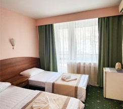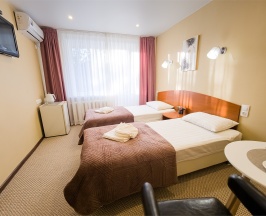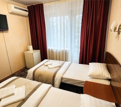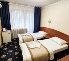Комфортный номер для двоих с двумя односпальными кроватями. В нем есть все необходимое для полноценного отдыха. Белоснежное постельное белье и полотенца, мягкие подушки и теплые одеяла. Номер оснащен кондиционером, телевизором, холодильником и чайником. К вашим услугам беспроводной интернет и телефонная связь. В номере отдельный санузел с небольшой ванной, а также выход на открытый балкон.