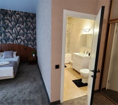 Отель шикарный. Тихое уютное место, персонал вежливый. Заселение без каких либо проблем.Цены адекватные. Утром покормили вкусным завтраком. Мы очень довольны, теперь только к Вам. Единственный минус-уделите чуть больше внимание уборке.