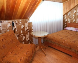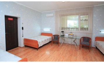 Свежий, просторный, уютный номер на первом этаже, рассчитанный на размещение трех человек. В номере три полутороспальные кровати. Стол, шкаф купе, три стул-кресла, телевизор, кондиционер. Из окна, выходящего на юг, открывается вид на цветочные клумбы и зону отдыха.
