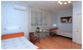 В номере: система кондиционирования, три 1,5-спальные кровати с ортопедическими матрацами, журнальный стол, три стул-кресла, ТВ-плазма, шкаф-купе, доступ к беспроводной сети интернет (Wi-Fi), тапочки, ванная комната с душевой кабиной и туалетными принадлежностями.