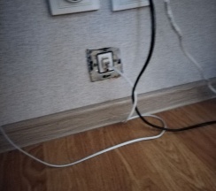 🔹Перемотанный изолентой провод в нескольких местах у лампы над столом, севшая батарейка в сейфе)