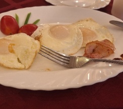 🔹Завтрак, который у нас был включён -либо каша, либо яишенка все 5 дней, что там были. Вкусно, правда последний раз положили просто три яичка и ломтик бекона, тоже странно👀