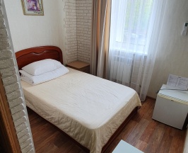 Уютный номер, рассчитанный на 1 человека (дети до 7 лет проживают бесплатно с родителем или законным представителем, при проживании двух взрослых, либо с ребенком от 7 лет, доплата в сутки составит 1000 рублей). В номере: телевизор, холодильник, кондиционер, комод, вешалка, зеркало, столик, пуф. Душ/туалет в номере. Бесплатный Wi-Fi. Курение в номере строго запрещено.