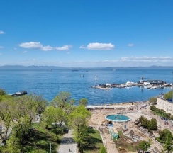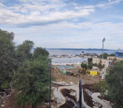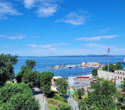 Отдыхали в этом отеле всей семьёй в июле 2025г. Нас заселили в номер на последнем (восьмом) этаже - и это был просто восторг! Уютные мансардные окна - и вид за ними прекрасный: видно Золотой мост, море, кинотеатр "Океан", живописные крыши! Можно любоваться в любое время суток!