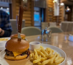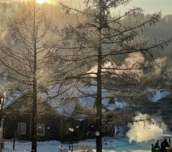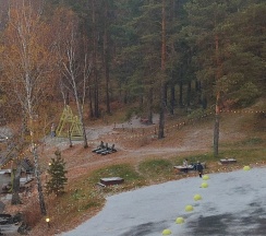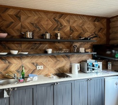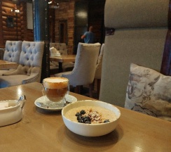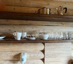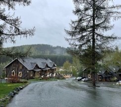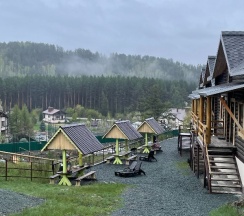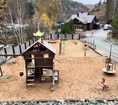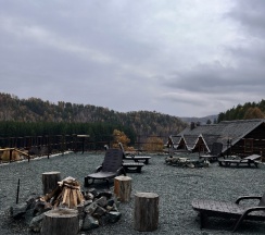 Мы отдыхали на Алтае в «шишке» там тоже все в дереве, но таких скрипов не было, все светлое, уютное, и хороший бонус был, включены завтраки.