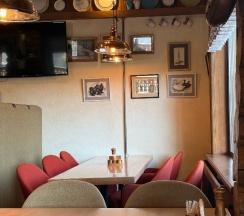 Красиво внутри, интерьер аутентичный. Вид красивый из окна, гористо. Дорого😋 но стоит того. Спасибо