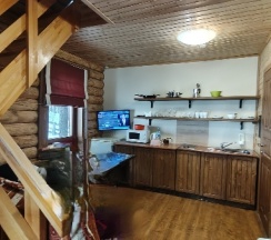 2. Мы снимали апартаменты. Внутри ооочень темно!! Одна лампа - «таблетка» на всю гостиную. Добавьте свет!!! Итак дерево внутри темное.