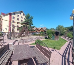 Отличный отель. Приезжаем с семьёй очень часто. Приветливый персонал, вкусная кухня, алкоголь, можно покурить кальян. Рядом набережная, где можно посидеть и пожарить шашлык. Также есть баня. Недалеко расположена горнолыжная трасса, в пешей доступности. Для детей есть зоопарк, аквапарк, и куча развлечений. Однозначно рекомендую!