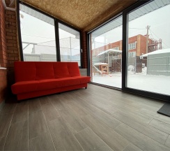 Двухэтажное комфортабельное бунгало с индивидуальным выходом на улицу во дворик с мангальной зоной и большим обеденным столом. Расположено в тсж "Горный воздух"(напротив ГЛЦ). Четырехместное/шестиместное размещение, с возможностью предоставления двух дополнительных спальных мест (вместимость до 8 человек) + маленькая детская кроватка. На первом этаже гостиная с оборудованной кухней с микроволновой печью, холодильником и полным комплектом посуды. На втором этаже две спальные комнаты с двуспальными кроватями! Атмосфера домашнего уюта и спутниковое телевидение позволят вам расслабиться после активного отдыха!
