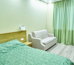 Двухкомнатное комфортабельное бунгало с индивидуальным выходом на улицу во дворик с мангальной зоной и большим обеденным столом. Двухместное/четырехместное размещение, с возможностью предоставления двух дополнительных спальных мест (вместимость до 5 человек) + манеж (по запросу). Бунгало оборудованы удобной кухней с микроволновой печью, холодильником, стиральной машиной и полным комплектом посуды. Атмосфера домашнего уюта, теплые полы, спутниковое телевидение, а также большая ванна 1350х1350 позволят вам расслабиться после активного отдыха.