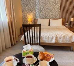Заселились по очень хорошей цене , отель очень понравился, территория очень красивая и ухоженная , бассейн чистый, но долго не поплавать ( прохладный ) хотелось бы теплее греть , завтраки скромные , но то что они включены уже хорошо ( чай, яйцо, сосиска, капустный салат, каша , булочка ) номер уютный , чистый , все понравилось