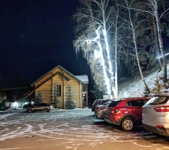 Был в начале сентября с семьей, в апартаментах (огромный таунхаус из гигантских бревен, 2 уровня, высоченные потолки, огромные панорамные окна, возможность выйти как с фасада, так и с задней стороны дома).
