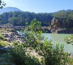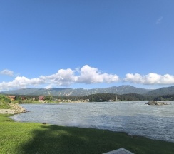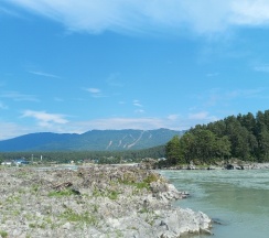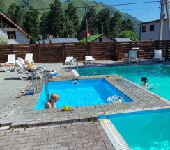 Понравилось всё- большая чистая территория, рядом речка Катунь с потрясающими видами, чистый бассейн. На территории отеля есть ресторан и кухня. Рядом много магазинов и кафе