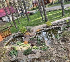 Красивая, облагороженная территория, у домиков есть своя парковка. В комнате идеально чисто. Хорошая кухня, на завтрак был шведский стол, разнообразный и по-домашнему вкусный. С територии есть выход к реке, можно увидеть Манжерокские пороги. Тихое, уютное место.