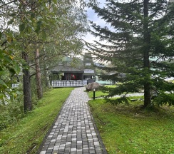 Территория ухоженная ,приятно прогуляться , есть 2 бассейна, детская площадка и тренажеры на улице , много беседок на берегу реки, где можно пожарить шашлычек и покушать.Баня классная все предусмотрено, халаты, полотенца, даже чай и самовар.На территории есть красивая смотровая площадка, которая находиться на горе и очень милая часовня.Кормили очень хорошо и вкусно. На следующий год обязательно приеду еще.