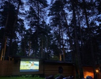 На территории есть уличный кинотеатр, каждый вечер показывают фильмы и вы можете расслабиться в мягких креслах под звездным небом.