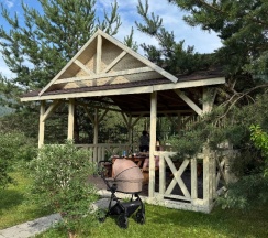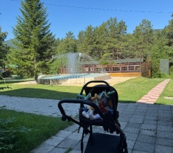 На базе очень уютно. Территория зелёная, всё ухожено, цветы и газоны радуют глаз. Бассейны чистые, дети купаются с удовольствием. Вечером в бане получили максимум удовольствия. Персонал внимательный, общаются спокойно и дружелюбно. Домики простые, но есть всё необходимое
