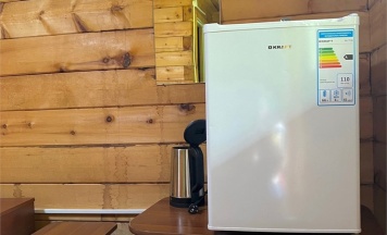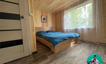 Внутри домика расположена комфортная кровать 140х200 , шкаф, холодильник , чайник , телевизор, микроволновая печь , душ с горячей/холодной водой, туалет , ванные принадлежности .