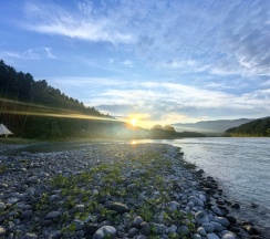 Отличное место, я бы даже сказала-волшебное.Мы отдыхали здесь с подругой неделю.И только восхищались красотой природы и такими хорошими людьми!Сергей Иванович свозил нас в больницу ( по необходимости) в Горно-Алтайск на личном транспорте, по дороге рассказывал об окружающих местах очень интересно.Анастасия и Анфиса-молодцы такие, все объясняли, помогали.Дима-наш гид-просто высшая категория, выше всяких похвал, такой коммуникабельный, интересный, юморной, эрудированный!!!(думаю, заслуживает премии!)Работникам столовой отдельное спасибо-очень вкусно готовили, по-домашнему.Условия проживания хорошие, мы жили в 3-этажном корпусе Александра, открываешь дверь на террассу, а там...Катунь во всей своей прелести., и сосны, какой воздух!!!Однажды даже дятел прилетал, сидел на сосне в нескольких метрах от окна.Вообще, я постоянно чувствовала, как будьто приехала к родным людям