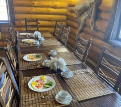 Нашей компании очень понравилась база!!! Очень уютно, натурально,зелено, без пафоса! Завтрак заказали накануне, утром у нас уточнили где нам накрывать, хочешь в домике, или у домика, хочешь в беседке. Вроде мелочь, а приятно) еда на твердую четверку! Мы заказывали травяной чай, и очень жалеем что не спросили какой он, и где его купить, очень вкусный, прям самый вкусный!