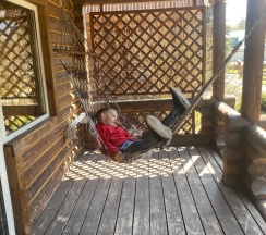 Есть детская площадка, возле каждого домика гамак(не дырявые, новые) и сушилка для белья. Большая беседка с видом на реку, удобный спуск к ней, и пляж без камней.