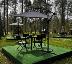 Мы отдыхали в домике летний стандарт два дня. В этом домике как описано в рекламе всё есть он очень уютный для двоих. Администратор Ирина очень приветливая все нам показала и рассказала что есть на территории. На территории есть зона мангала, кролики, ресторан и всё что описано в рекламе. Мы хорошо провели время. Спасибо вам.