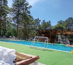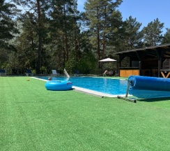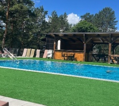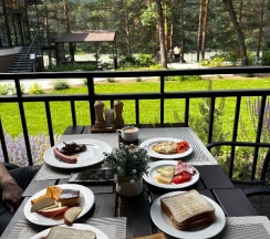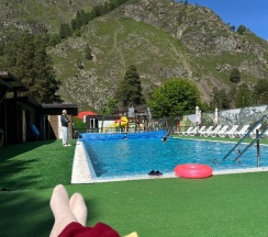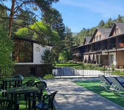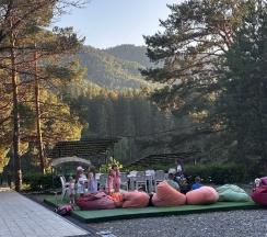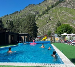 Совершенно случайно увидела ваш отель. забронировала только на 2 дня. Подумали с мужем, вдруг не понравится. Несколько дней отдыхали в другом отеле. Захотелось разнообразия, посмотреть и отдых в других местах. Приехали за час до заезда в номер. Пока номер приводили в порядок, мы решили осмотреть территорию. Очень чистая и уютная территория, не увидели не одной бумажки и окурков. Беседки по территории с мангальной зоной все разные. Находятся вдоль реки, есть баня очень классная с балконом на реку. Персонал весь вежливый, все приветствуют, улыбаются. На ресепшене работали две девушки: Юлия и София, очень доброжелательные девочки. Всё расскажут, покажут, объяснят. Доброжелательный и внимательный управляющий Сергей Владимирович, большое ему спасибо за хороший отдых. Целый день следит за персоналом, за отдыхающими, чтобы всем было комфортно и уютно. В номере очень чисто и есть всё для отдыха: большой телевизор, стол со стульями, холодильник, мини кухня с посудой и чайником, диван. На балконе столик и кресла, сушилка. Каждый день проводят уборку. Завтрак разнообразный, всё вкусно, можно в зале кушать или на открытой террасе. Понравился бассейн с подогревом, температура 28 градусов в нём. Для детей бассейн ещё теплей. Мы приехали немного испортилась погода, закапал дождь, но всё равно купались в тёплой воде. Что ещё понравилось, что на территории бассейна есть сауна, там температура была 80 градусов. Просто шикарно после сауны нырнуть в бассейн. Для детей есть всё: детская комната, где продумано буквально всё для игр и рисования и т.д. Есть площадка детская с горками, качелями и т.д. Бесплатные велосипеды, самокаты, кинотеатр, прачечная. А какие молодцы аниматоры, работают целый день. Вечерами есть зона, где горит костёр, лежат пуфики мягкие и с детьми играют, а взрослые могут просто посидеть и отдохнуть. Вообщем мы приехали на 2 дня, а задержались на 4 дня. Нам всё понравилось. Приедем ещё на следующий год. Всем советую посетить этот отель. Всем сотрудникам отеля желаю успехов в работе, побольше хороших отдыхающих, здоровья, процветать, улучшать условия всё лучше и лучше. С наилучшими пожеланиями, Татьяна.