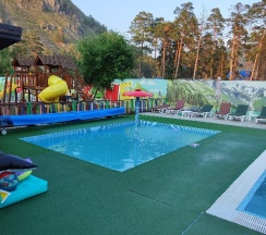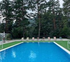 В этом отличном месте мы провели неделю с 1 по 8 августа. Спасибо команде отеля за прекрасный отдых! В отеле очень чисто, и в номерах, и на территории. Номер просторный, с хорошим ремонтом в приятных глазу оттенках, бельё белоснежное, уборка ежедневная, пополняется запас питьевой воды. В номере есть чайник, холодильник, фен, телевизор,всё отлично работает. Халаты/тапочки, гели/шампуни, мыло, зубные наборы - в наличии. Территория ухоженная. В верхней части можно прогуляться среди сосен, в нижней - спуститься к Катуни. Есть спортивная и детская площадки, мангальные зоны с видом на реку, садовые качели по всей территории, игровая комната для детей с чудесным аниматором, релакс-зона с бассейнами и сауной. Отель для семейного отдыха, детей много, от грудничков до подростков. Бедняги кролики, живущие на территории, наверное, очень устают от настойчивого внимания постоянно обновляющегося детского коллектива, непременно желающего кормить и гладить "зайчиков"😁.
