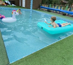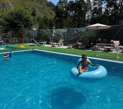 Есть теплый бассейн, включая детский (правда все дети во взрослом, это не сильно комфортно, т к они брызгаются, играют в мяч и т д), плавать не сильно получается, но жаркий день провести у бассейна самое то.