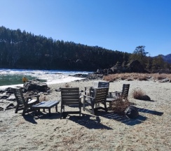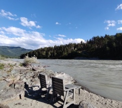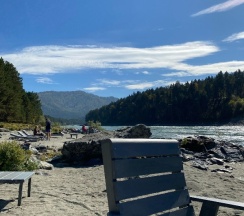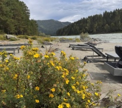 По самой базе очень приятно гулять. Газон всегда подстриженный, территория обустроена дорожками, которые приведут к Катуни. На пляже есть лежаки и деревянные кресла, можно сидеть часами и наслаждать видом 😍