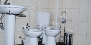 Санузел: на 1-м этаже, туалет, умывальник, на 2-м этаже: туалет, умывальник, душевая кабина, на 3-м этаже: туалет, умывальник, душевая кабина в каждой из двух комнат.