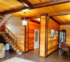 Есть небольшой бассейн, свой спуск к реке, снимали на двоих кедровый домик, нам с мужем все понравилось.