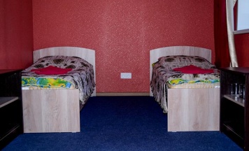 В комнате двуспальная или две односпальных кровати, тумбочки, ТВ.