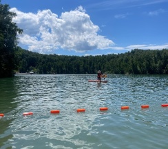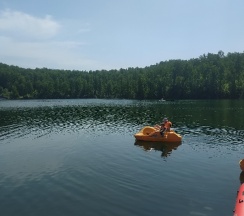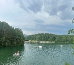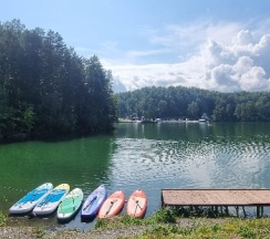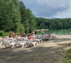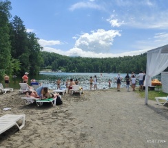 Отличное место для семейного отдыха, отдыха с друзьями. На озере чисто, имеются шезлонги, плавают дикие уточки. В прокате катамараны, сабы, лодочки. Номера в домиках всегда чистые, современные. Отдыхаем второй год! Рядом есть кафе. Туалет.