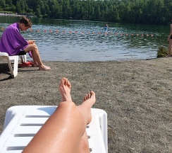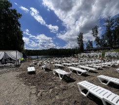 4. Само озеро и пляжная территория. Тут всё организовано. Кабинки для переодевания, душ для мытья ног. Лежаков много. Если прийти рано утром, видно, что территорию убирают ночью, по состоянию песка). Лежаки стоят ровно, чистые.