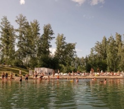 Цена сейчас 700 руб взрослые, до 5 лет бесплатно, можно выходить и заходить сколько хочешь, в целом территория большая, ухоженная, можно бегать по газонам, играть с мячом, купаться в озере, арендовать любой снаряд. Шезлонгов на всех хватает, хотелось бы отметить анимацию, которая постоянно проводит разные мастер-классы, особенно интересно для детей. Вода в озере прохладная, детям некомфортно купаться, но в бассейнах напротив где вход 2.000 руб вода ещё холоднее.