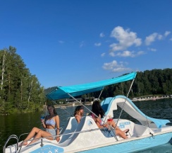 - Наличие разнообразных развлечений: озеро Ая, катание на катамаране, Sap, бани, волейбол, теннис, детская площадка.
