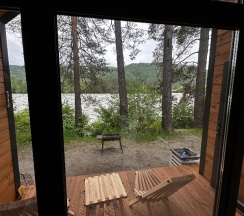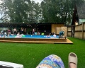 Красиво . Вид на реку и на лес . Много домиков и номеров . Есть бассейн , и спуск к реке . На территории клуб империя . Нам очень понравилось .
