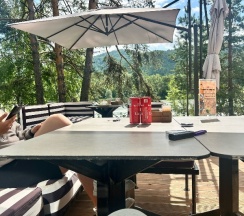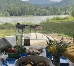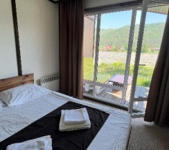 Хорошее место, снимали домик Б+ , из плюсов сан узел в номере, при заказе еды на територии приносят в номер. Минус в домике было прохладно , но нам дали доп одеяла