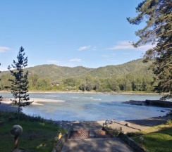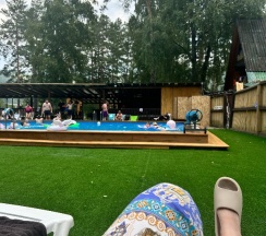 База не плохая 👍 и клуб и бассейн и красивые виды на Катунь. Бурундучки и кролики бегают по территории. Не очень людно. Строят ресторан, его прям не хватает. Но есть минус, на территории в обслуживающем персонале работают несовершеннолетние дети. Они принимают и убирают номера. В номерах паутина весит как гирлянды, на лестницах, да она везде 😄 лично видела как номер убирали соседний, пару раз махнули веником и готово по их мнению, грязь в каждом углу. Домик был рассчитан на 4 человека, не было подушек с одеялом, (по просьбе предоставили), но ничего не подготовленно заранее, всего один рулон бумаги на 4 человека на 2 суток.
