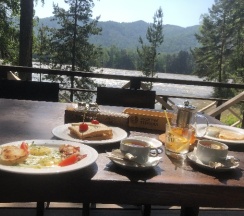 База очень уютная! В кафе Трактир еда просто супер можно покушать на террасе с очень красивыми видами😍
