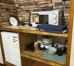 Уютные теплые домики, все необходимые есть ни за что дополнительно платить не надо!!! Полностью оборудованная кухня, всегда есть горячая вода. Возле каждого домика мангал и верандочка где приятно проводить время, но приятней всего оказалась цена)