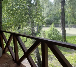 Большая территория, красивый вид на реку. Лучше брать дом с кухней, у нас был без кухни, не все жильцы соблюдают порядок. На территории также есть летний домик с кинотеатром, очень приятное место, дают пледы.
