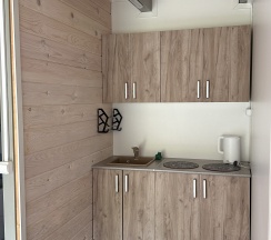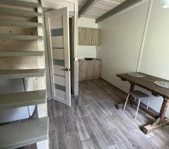 Трехместный двухэтажный дом со своей мини кухней и балконом с видом на реку