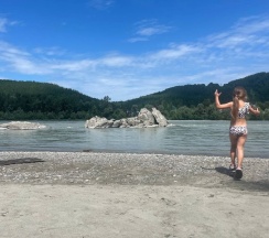 Катунь в 10 мин ходьбы, красивый песчаный пляж, можно позагорать и искупаться