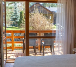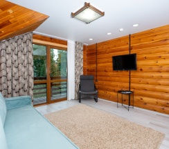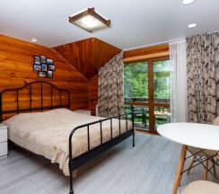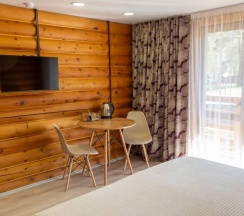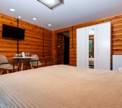 Уютные двухместные номера повышенной комфортности, которые располагаются в коттедже из алтайского кедра. Общая площадь номера — 22кв.м. Номера с балконами, с видом на гору или на озеро.